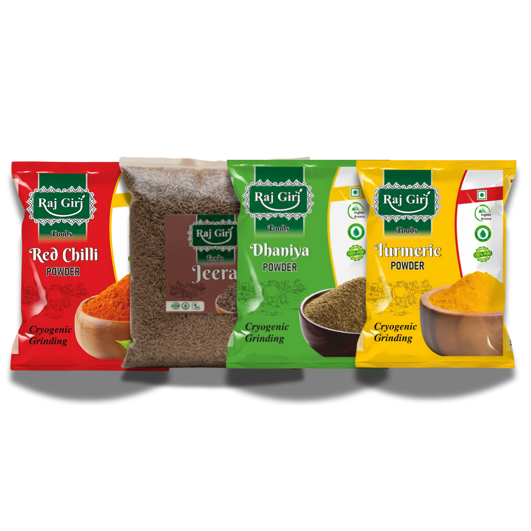 Make your everyday cooking more flavorful with this Kitchen Combo Pack that includes – Red Chili Powder, Turmeric Powder, Coriander Powder, and Cumin Seeds. These four essential spices are the heart of every Indian kitchen, adding taste, aroma, and color to your dishes.